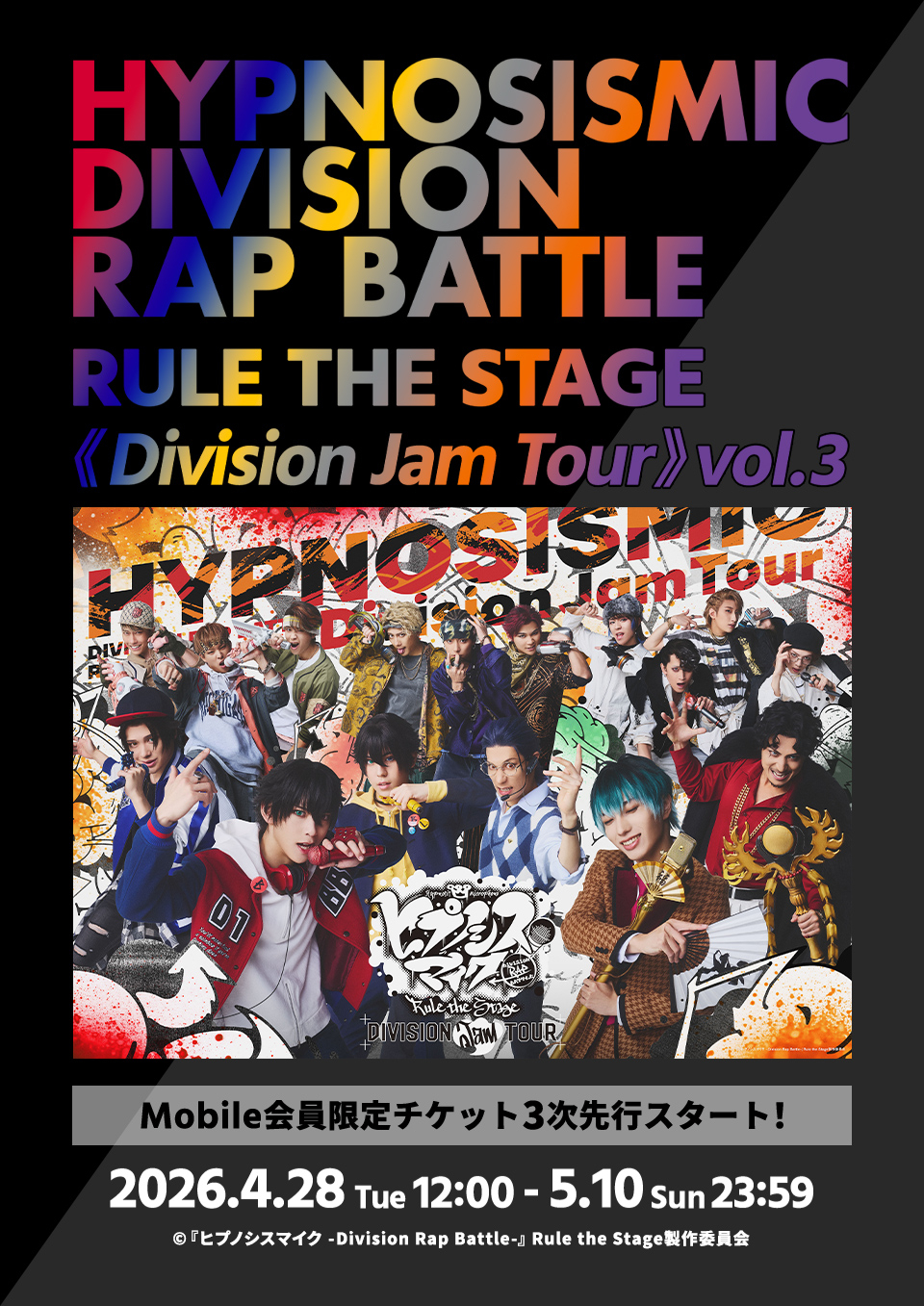 『ヒプノシスマイク -Division Rap Battle-』Rule the Stage《Division Jam Tour》vol.3チケット2次先行スタート!!